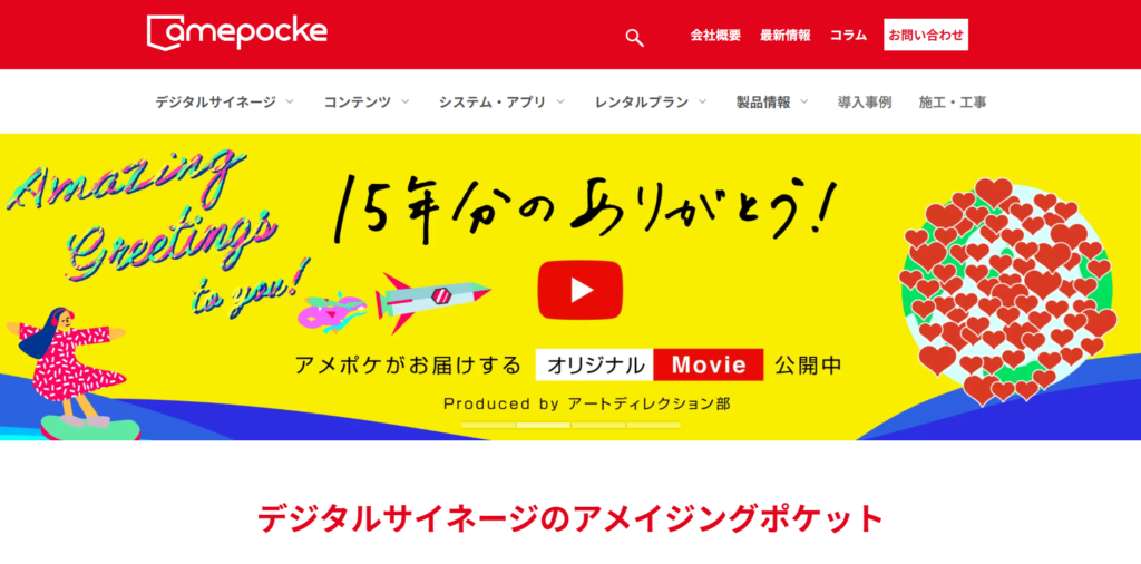 株式会社アメイジングポケットは、デジタルサイネージ制作に15年の実績を持つ制作会社です。